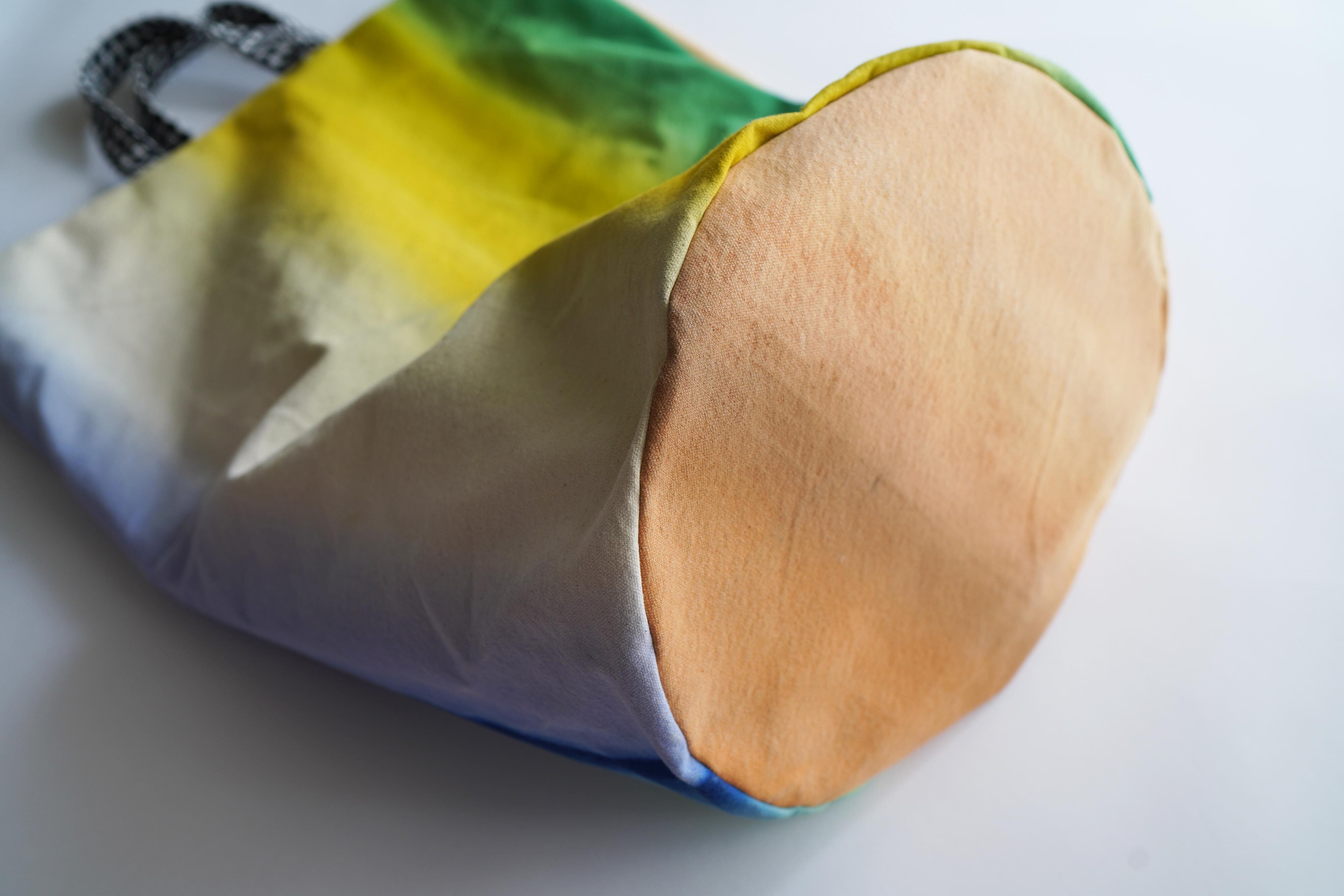 素材 / 綿布にアクリル絵の具、防水スプレー・ワニスをスプレー散布、内布はキルティング生地
